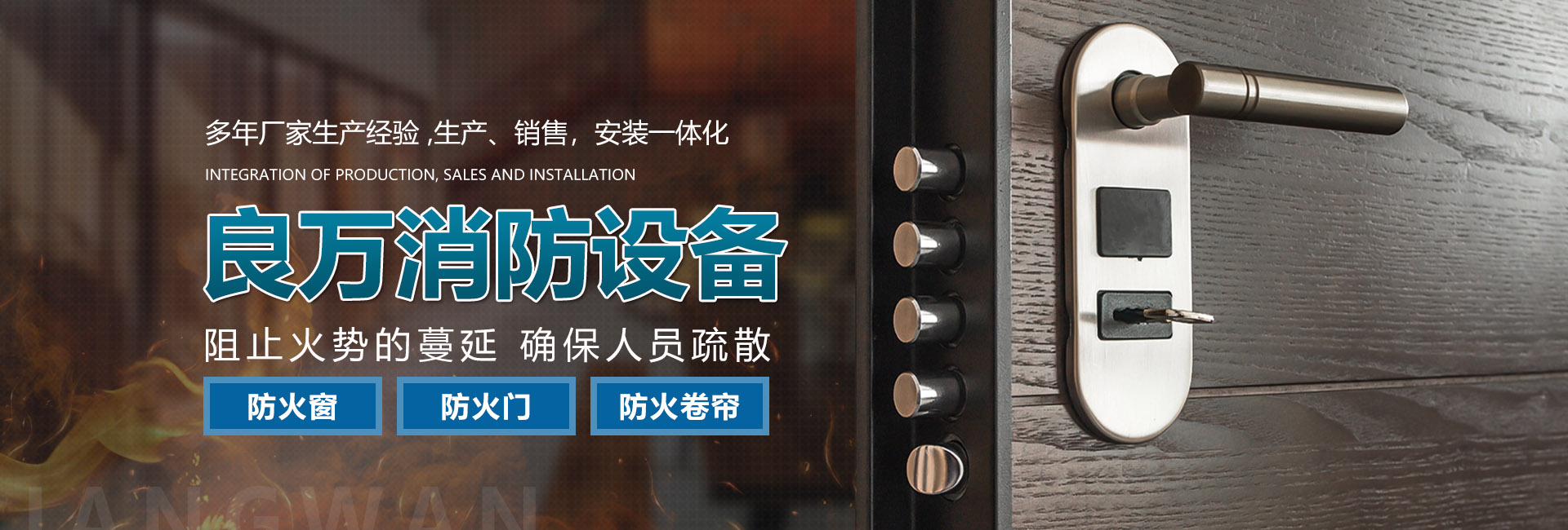 合肥良萬消防設(shè)備有限公司位于合肥市包河工業(yè)園,生產(chǎn)銷售安裝:防火門、防火卷簾門、防火窗等消防安全產(chǎn)品。公司具有研發(fā)、設(shè)計、生產(chǎn)、銷售、及安裝服務(wù)的綜合配套能力。合肥良萬消防設(shè)備有限公司技術(shù)力量強(qiáng),設(shè)備齊全,產(chǎn)品不斷創(chuàng)新,以信譽立業(yè),客戶滿意是我們永無止境的追求。我們在保證產(chǎn)品質(zhì)量的同時,也十分注重售后服務(wù),保證消防安全產(chǎn)品的正常運行。公司始終堅持誠信為本的企業(yè)宗旨,真誠希望與社會各界新老客戶精誠合作,良萬愿與您攜手共創(chuàng)輝煌!